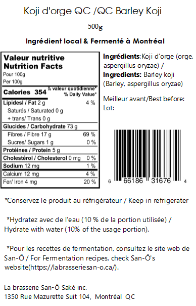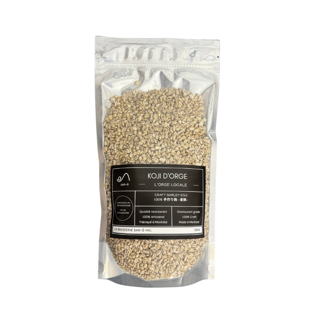Notre Koji d'orge est un ingrédient de qualité supérieure, soigneusement cultivé au Québec et inoculé avec des spores de koji (Aspergillus oryzae). En exploitant l'art ancien de la fermentation, ce koji transforme l'orge en un ingrédient riche en nutriments et en saveurs, idéal tant pour les applications culinaires traditionnelles qu'innovantes.