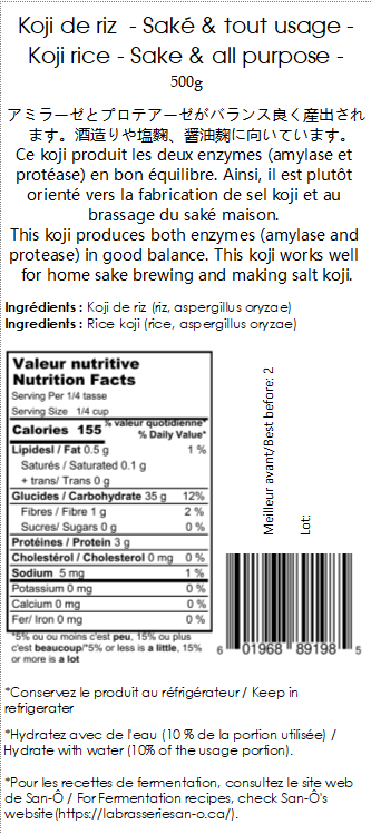Ideal for sake brewing, salt koji, and a variety of other fermentations, our premium koji rice utilizes the full power of fermentation to enhance the flavor and texture of your creations. Whether you're a professional chef or a home cook, this koji rice provides superior results for all your culinary needs.